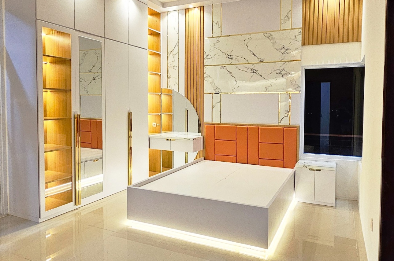 Kamar tidur yang nyaman dengan gaya yang elegan untuk istirahat yang berkualitas.